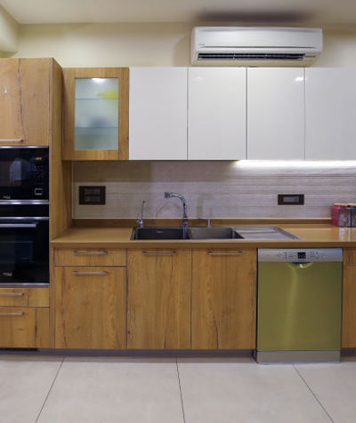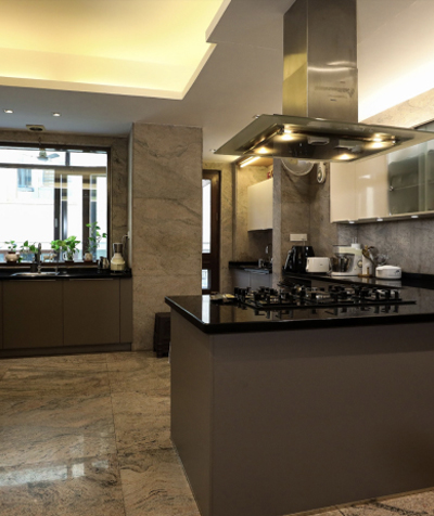 Once a design is finalised,we send our site supervisor to check actual measurements of the kitchen before the order is placed to Hacker, Germany. Site is inspected again before arrival of the kitchen to verify compliance of our instructions in relation to wall surface and proper positioning of the plumbing and electrical points to be followed for installation of the kitchen.